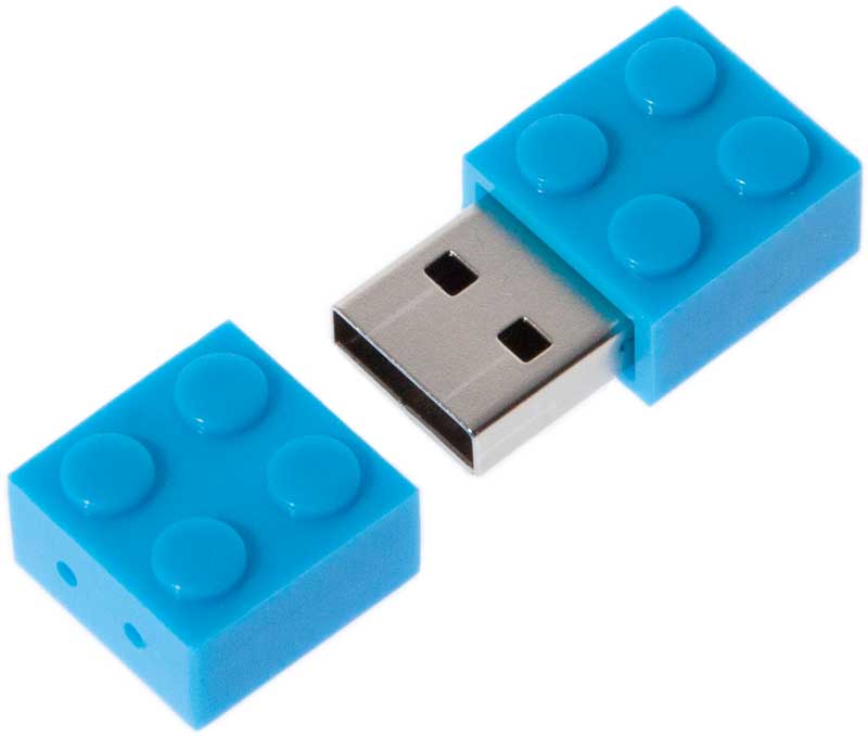 Ein USB-Stick versteckt in einem Spielzeug Baustein. Praktisch für die Hosentasche, im extrem kompakten Format. Der Brick kann mit Ihrem Logo bedruckt werden.